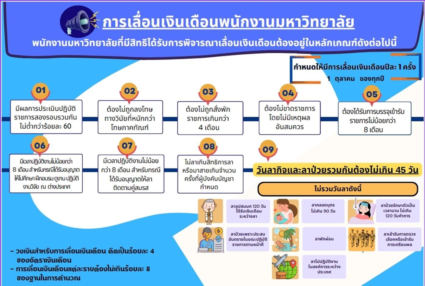 พนักงานมหาวิทยาลัยที่มีสิทธิได้รับการพิจารณาเลื่อนเงินเดือนต้องอยู่ในหลักเกณฑ์ ดังนี้